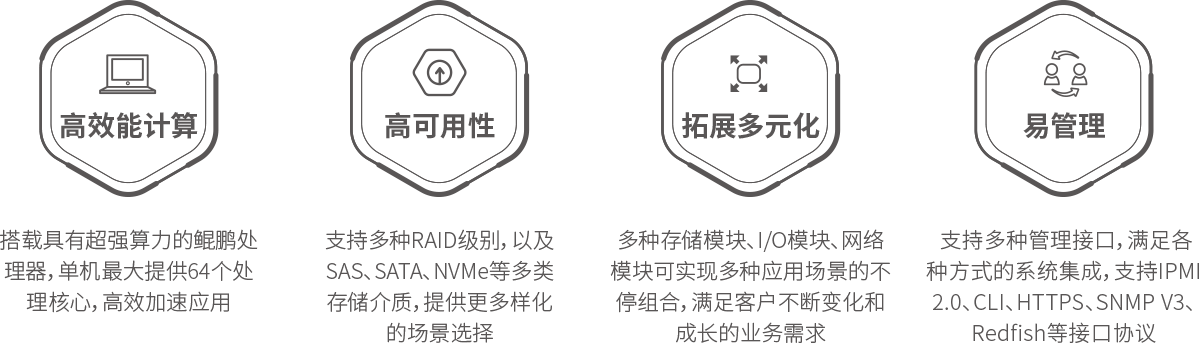 mile米乐集团 KunTai R721高密服务器是神州数码基于鲲鹏基础硬件推出的新一代高密度计算设备。其具备高效能计算、安全可靠与开放生态优势。